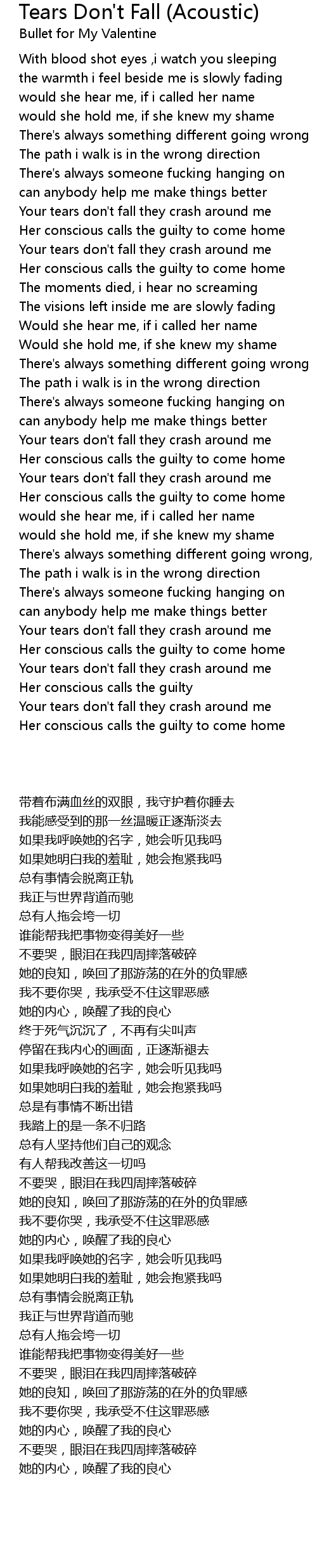 Your tears don't fall they crash around me |
