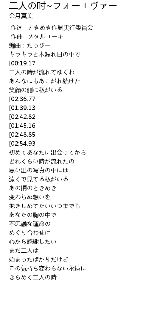 | [00:35.32][01:39.13][02:39.85] | (ときめき) |