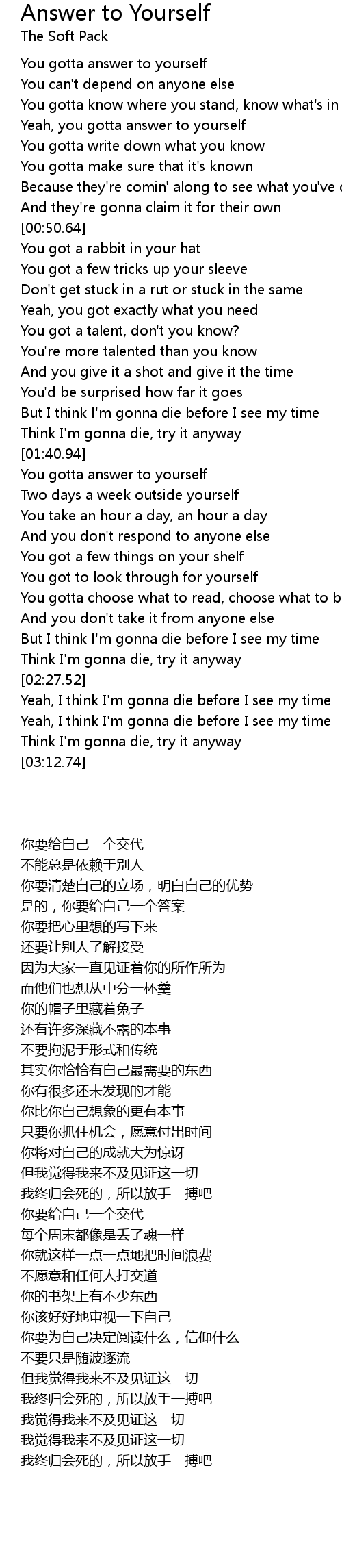 You gotta answer to yourself |