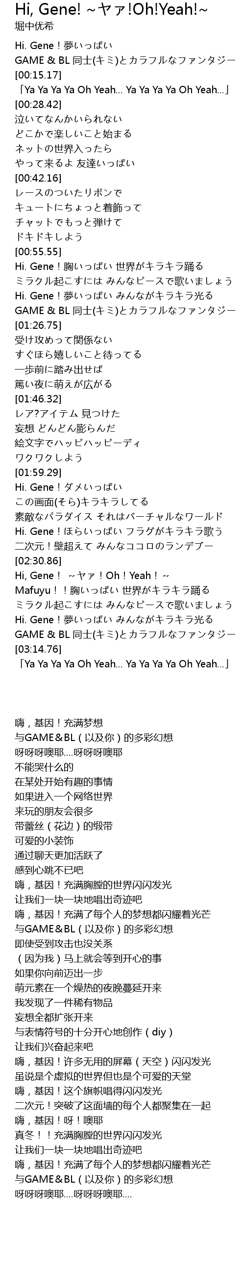 | [02:33.00] | Hi, Gene! ~ヤァ!Oh!Yeah!~ |