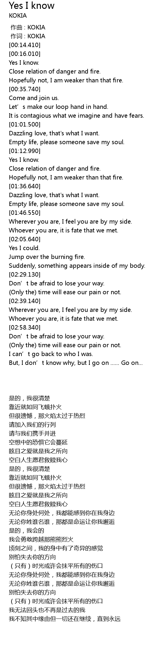 | [00:01.00] | 作词 : KOKIA |