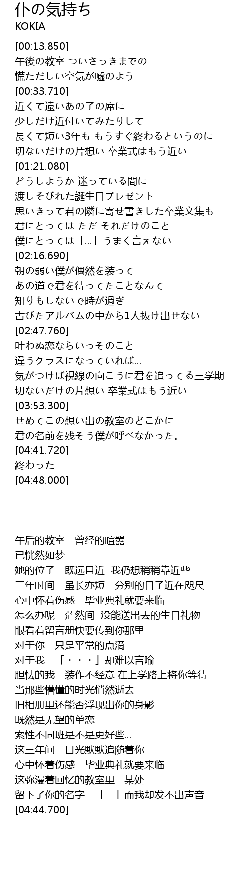 | [03:38.720] | 切ないだけの片想い 卒業式はもう近い |