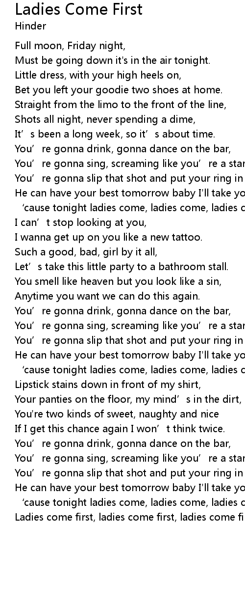 | ' cause tonight ladies come, ladies come, ladies come first, | |