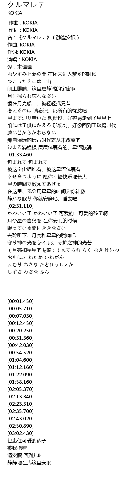 | [00:01.450] | 名:《クルマレテ》(静谧安眠) |