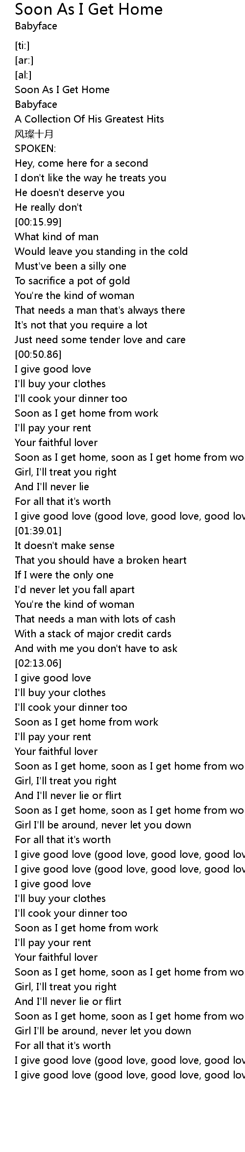 | [02:41.18] | Soon as I get home, soon as I get home from work |