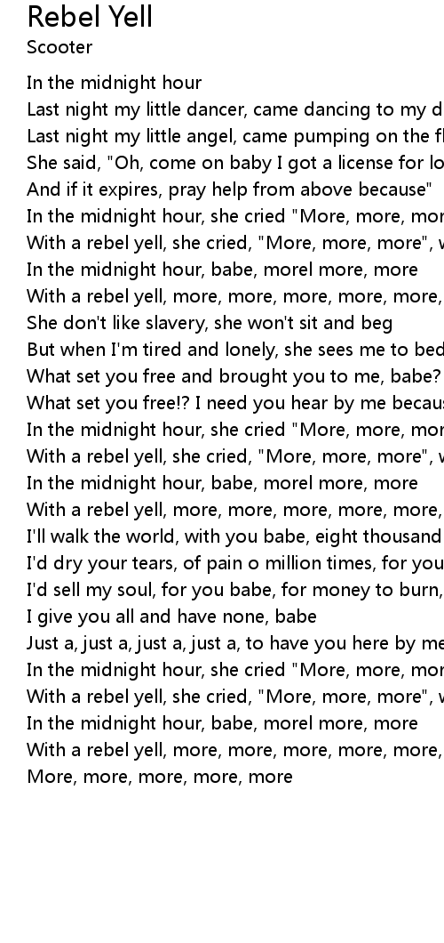 With a rebel yell, more, more, more, more, more, more |
