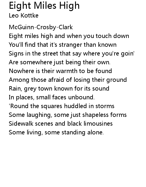 | Eight miles high and when you touch down | |