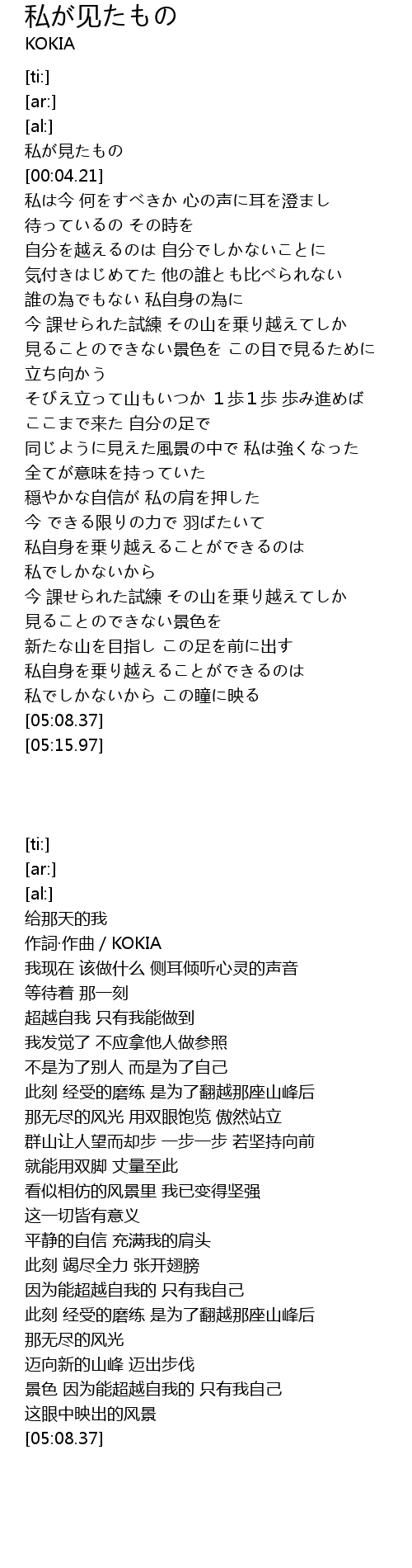 | [02:42.82] | 私自身を乗り越えることができるのは 私でしかないから |