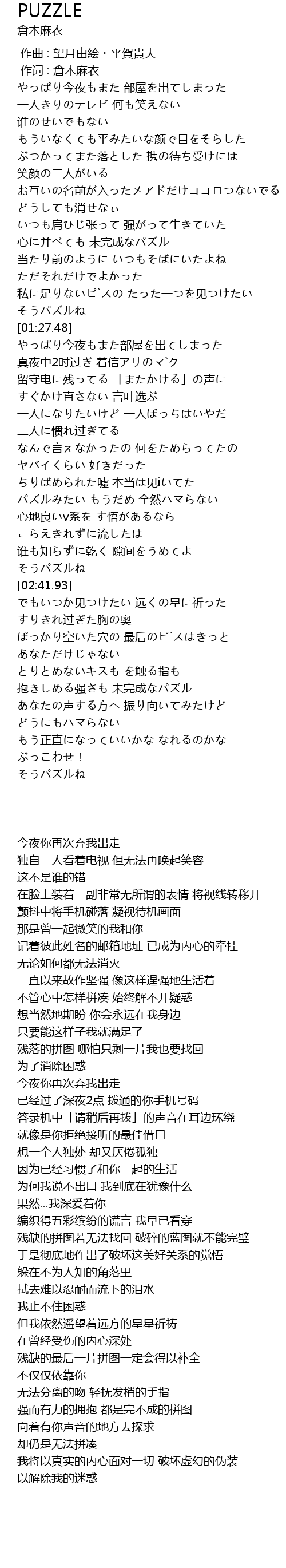 | [02:14.37] | パズルみたい もうだめ 全然ハマらない |