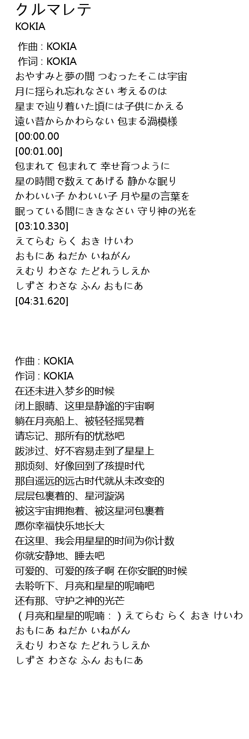 | [02:35.350] | かわいい子 かわいい子 月や星の言葉を |
