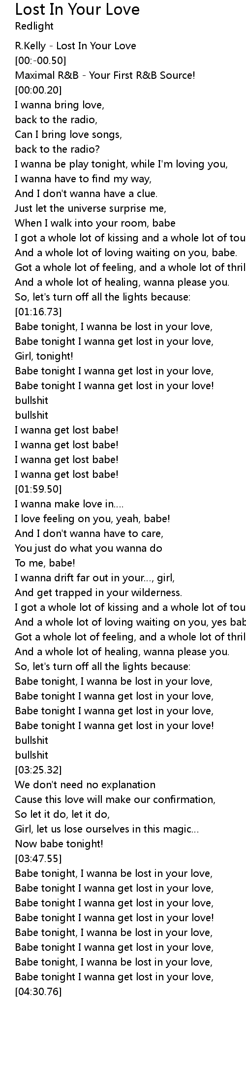 | [04:03.47] | Babe tonight I wanna get lost in your love! |