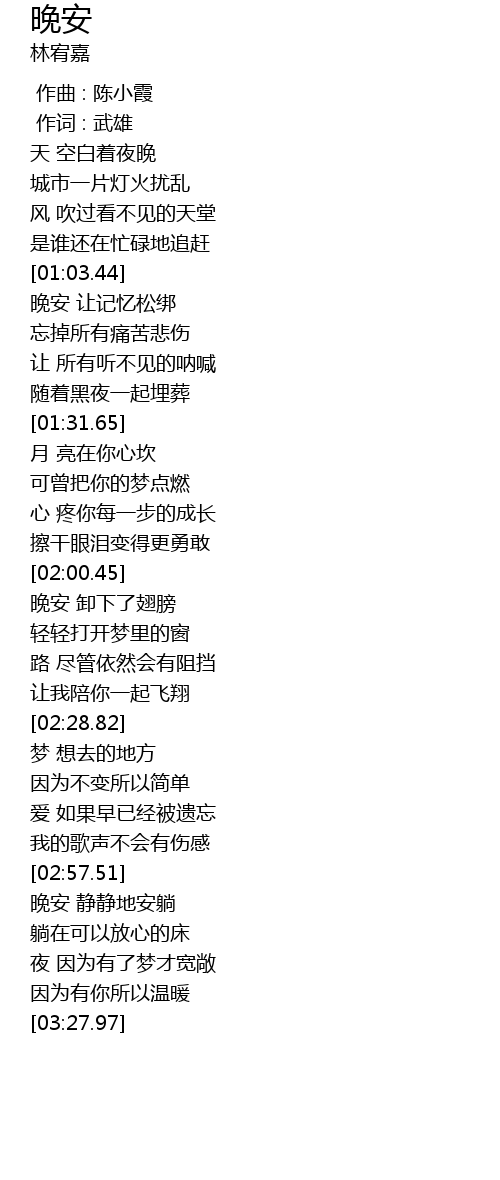 | [02:58.38] | 晚安 静静地安躺 |