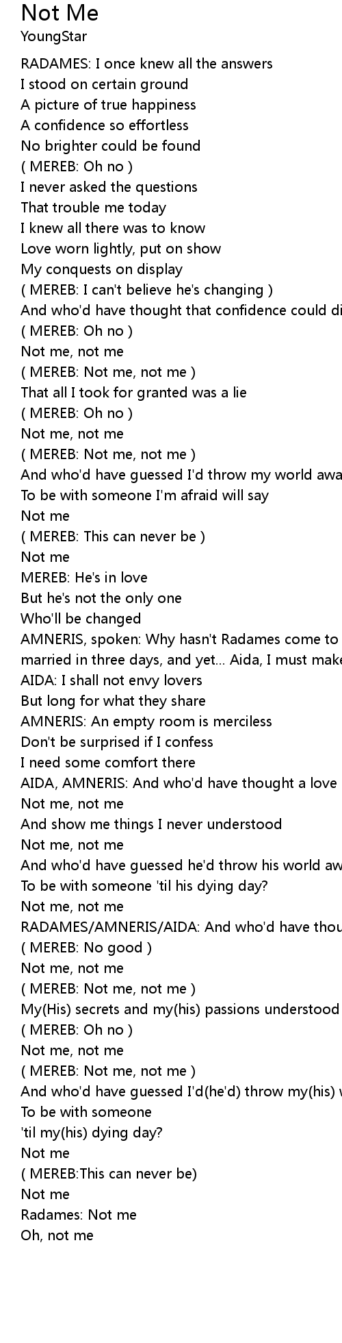 Not Me Lyrics