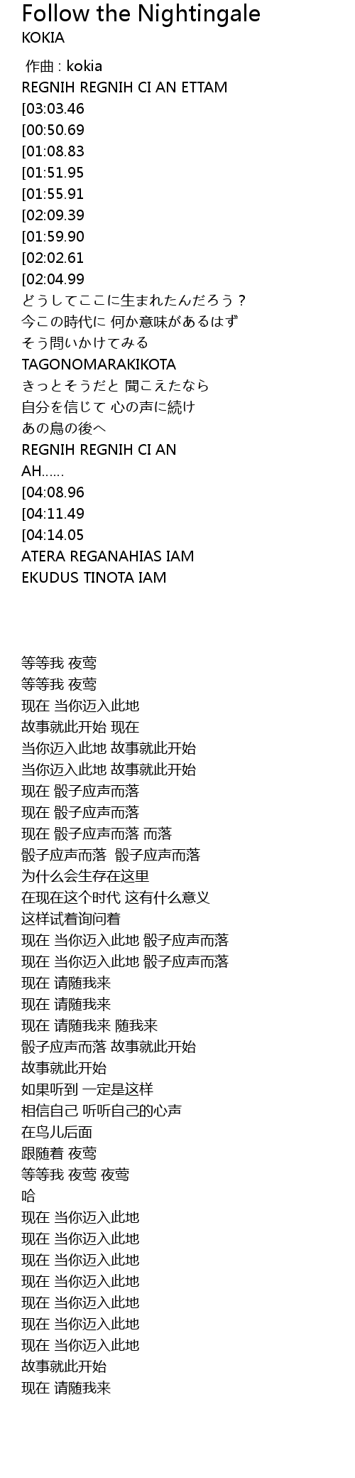 | [00:00.00] | 作曲 : kokia |