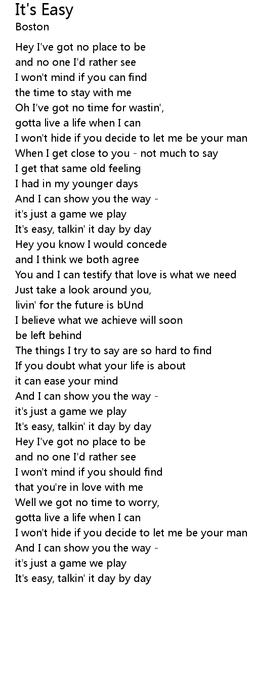 It's easy, talkin' it day by day |