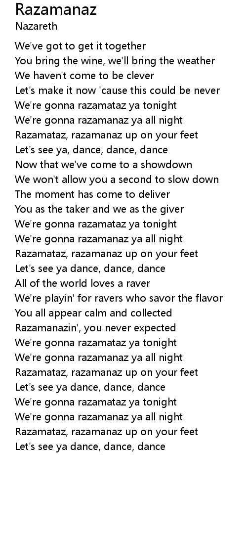 We're gonna razamanaz ya all night |