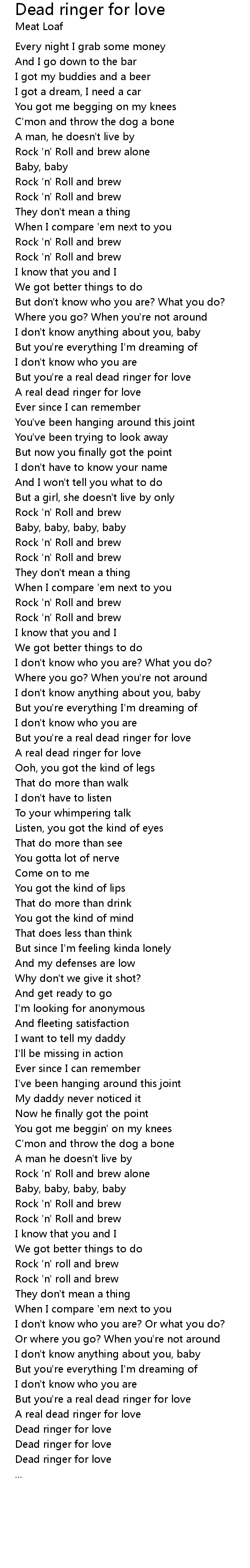 But you're a real dead ringer for love |