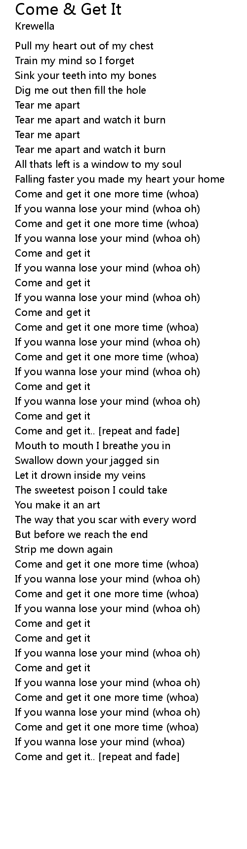 Come and get it.. [repeat and fade] |