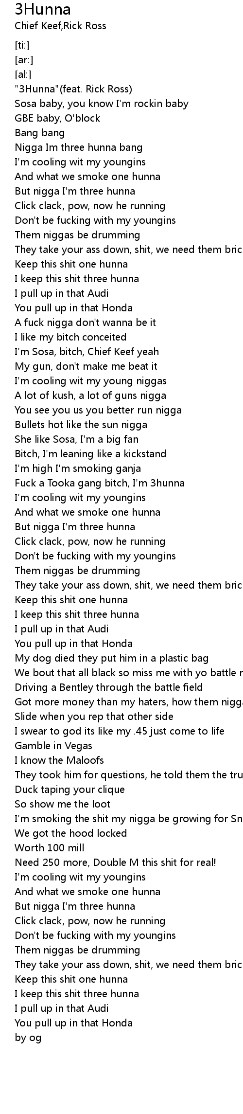 Fuck a Tooka gang bitch, I'm 3hunna |