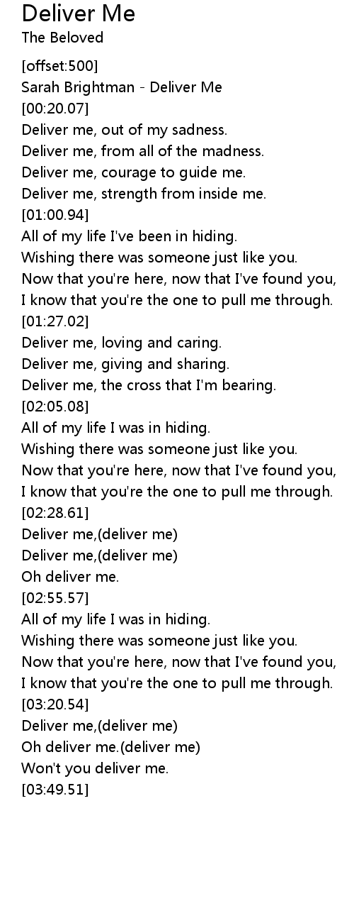 Won't you deliver me. |