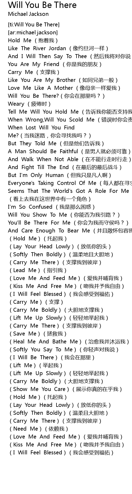| [02:50.194] | (I Will Be There)(我会在那里) |