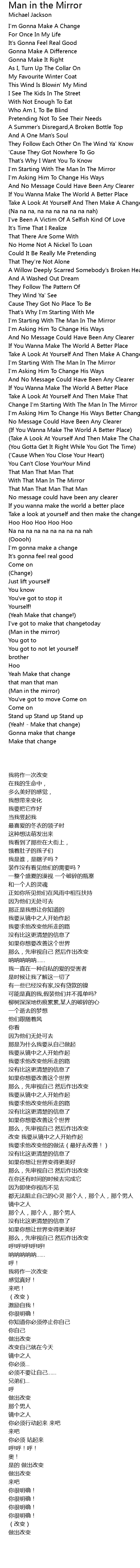 Change I'm Starting With The Man In The Mirror |