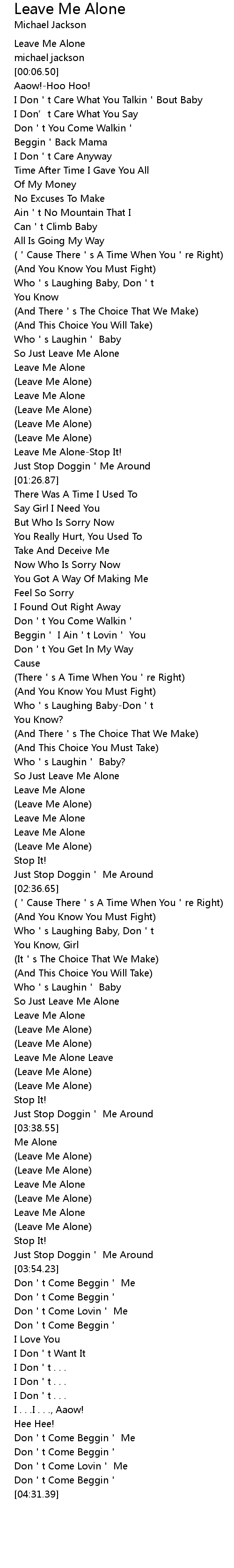 | [03:46.47] | (Leave Me Alone) |