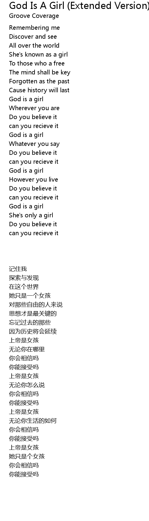 | [00:44.34] | God is a girl |