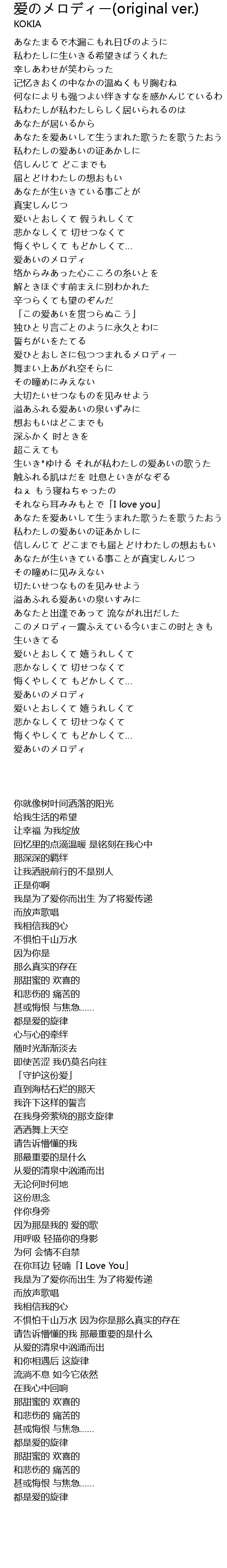 | Song | 爱のメロディー(original ver.) |