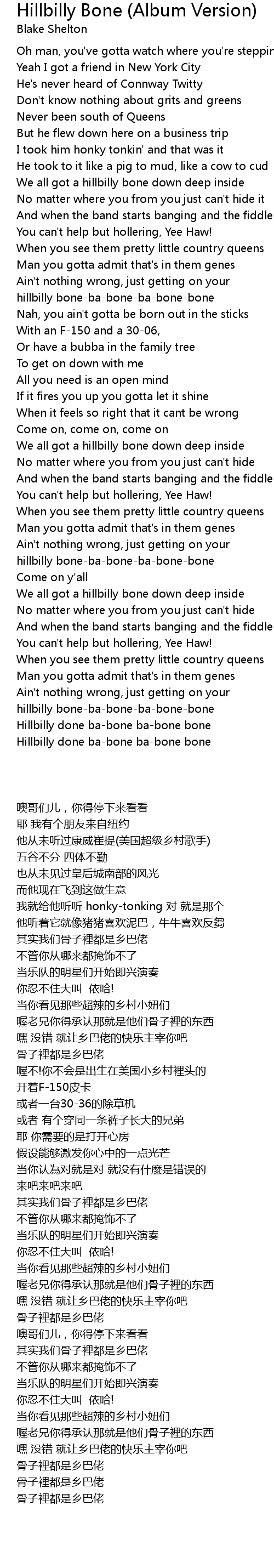 Hillbilly done ba-bone ba-bone bone |