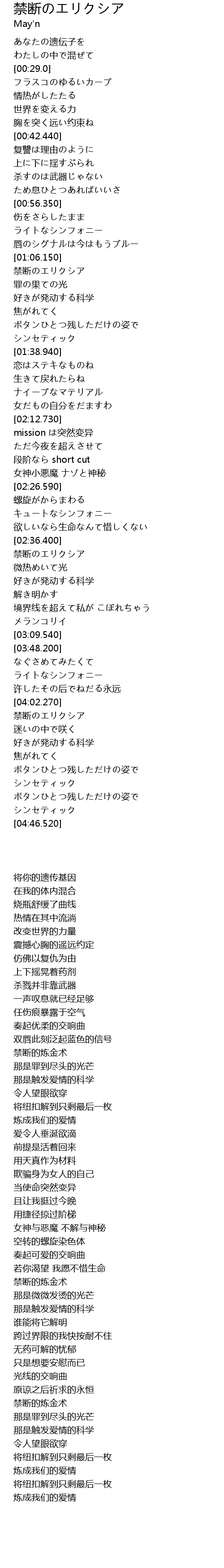 | [02:54.380] | 境界线を超えて私が こぼれちゃう |