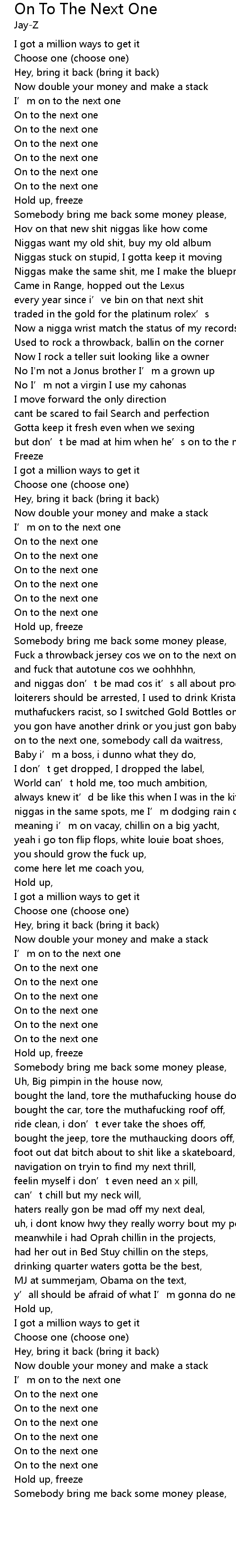 | [01:42.41] | Fuck a throwback jersey cos we on to the next one, |