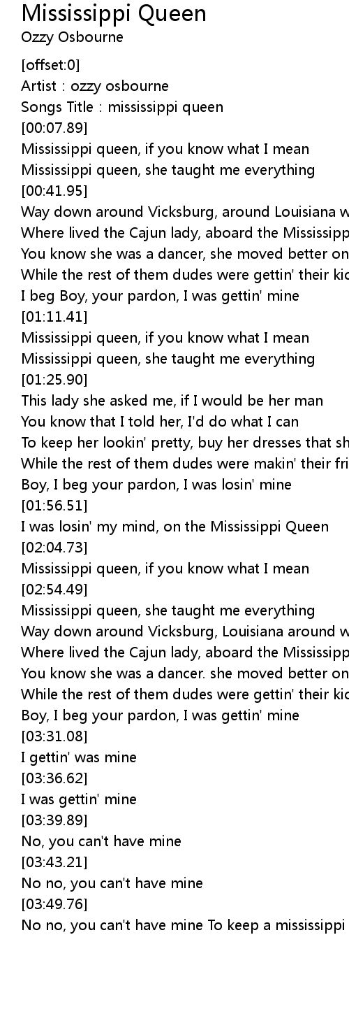 | [03:57.69] | No no, you can't have mine To keep a mississippi queen |