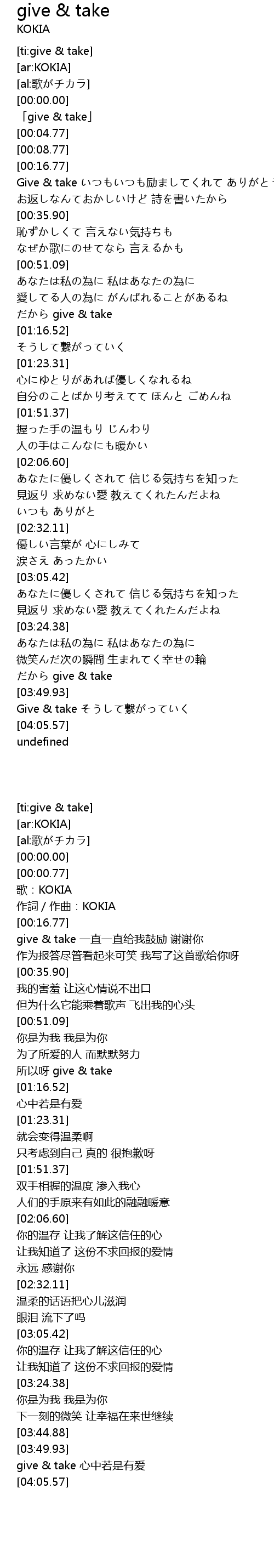 | [00:00.77] | 「give & take」 |