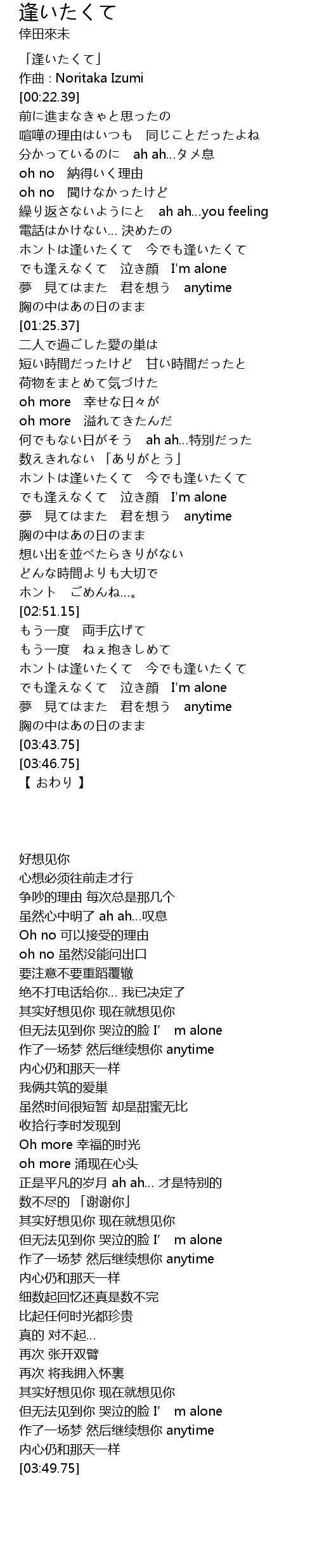 | [03:23.66] | でも逢えなくて 泣き顔 I'm alone |