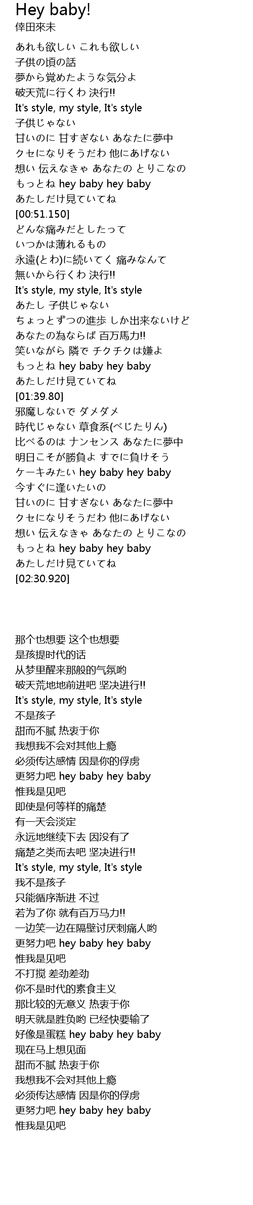 | [00:45.640] | もっとね hey baby hey baby |