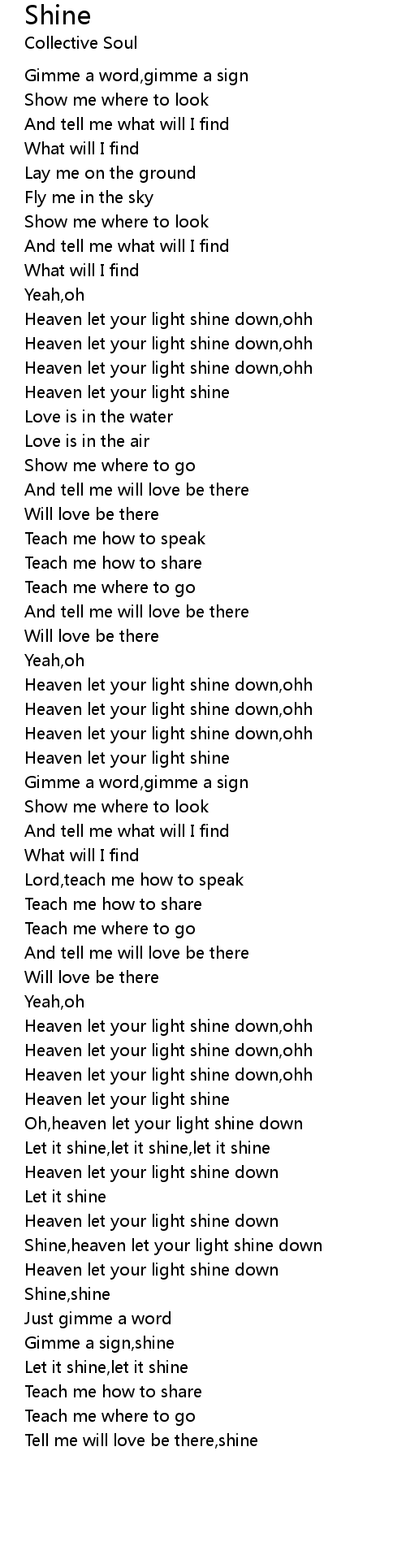 Shine,heaven let your light shine down |