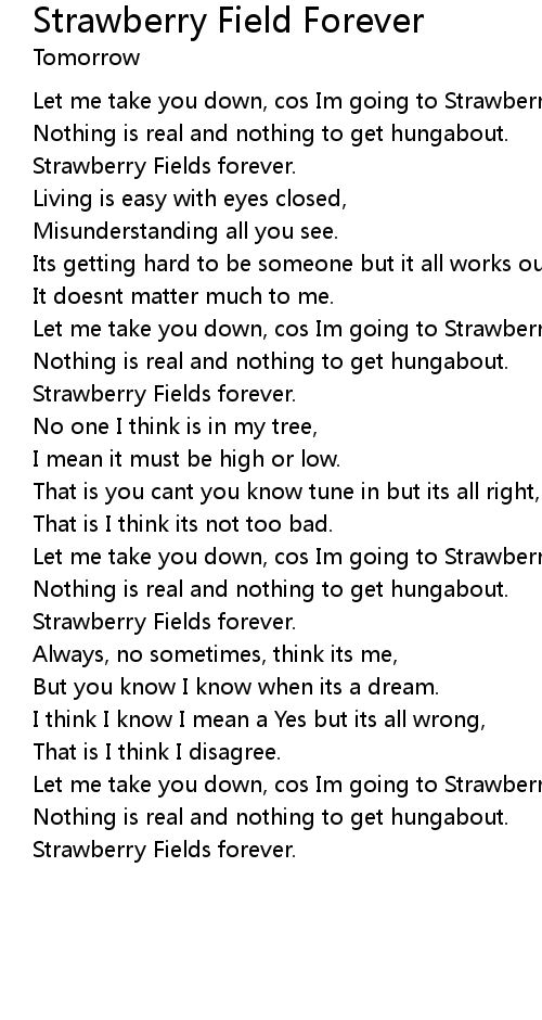 Let me take you down, cos Im going to Strawberry Fields. |