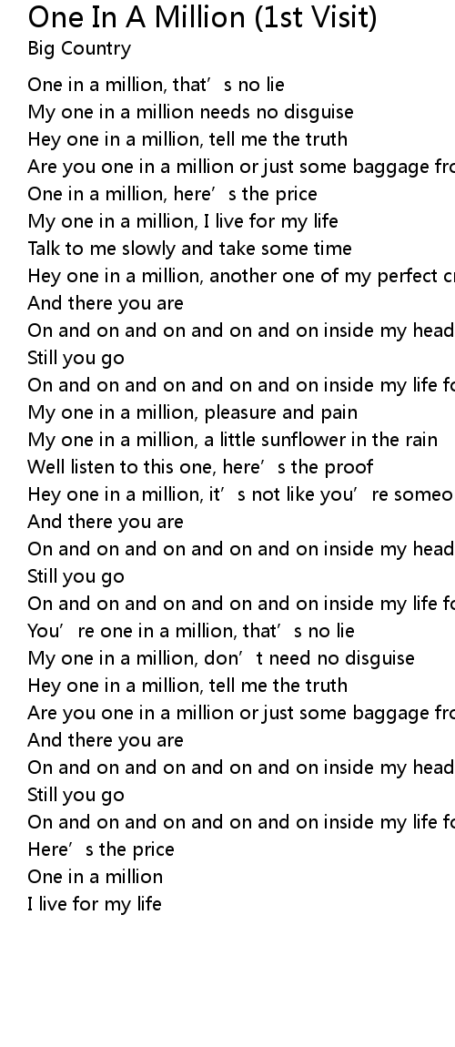 | [00:18.00] | Hey one in a million, tell me the truth |
