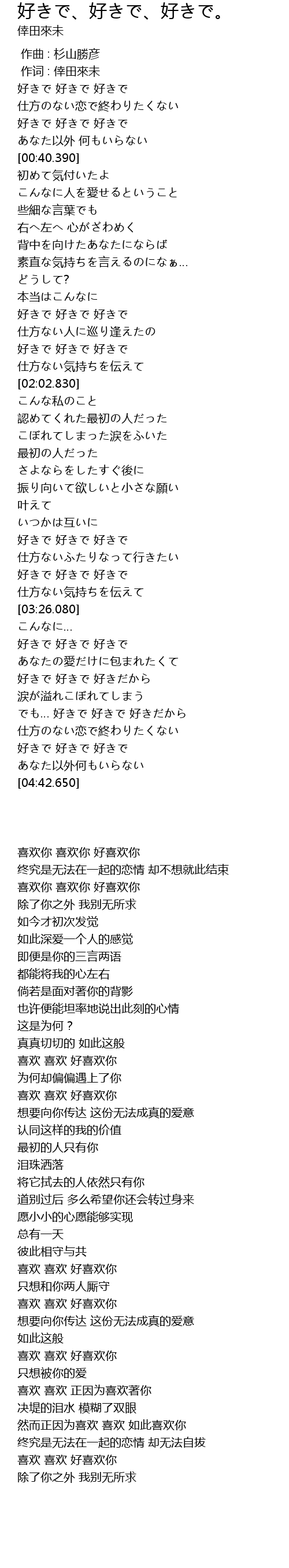 | [01:38.730] | 好きで 好きで 好きで |