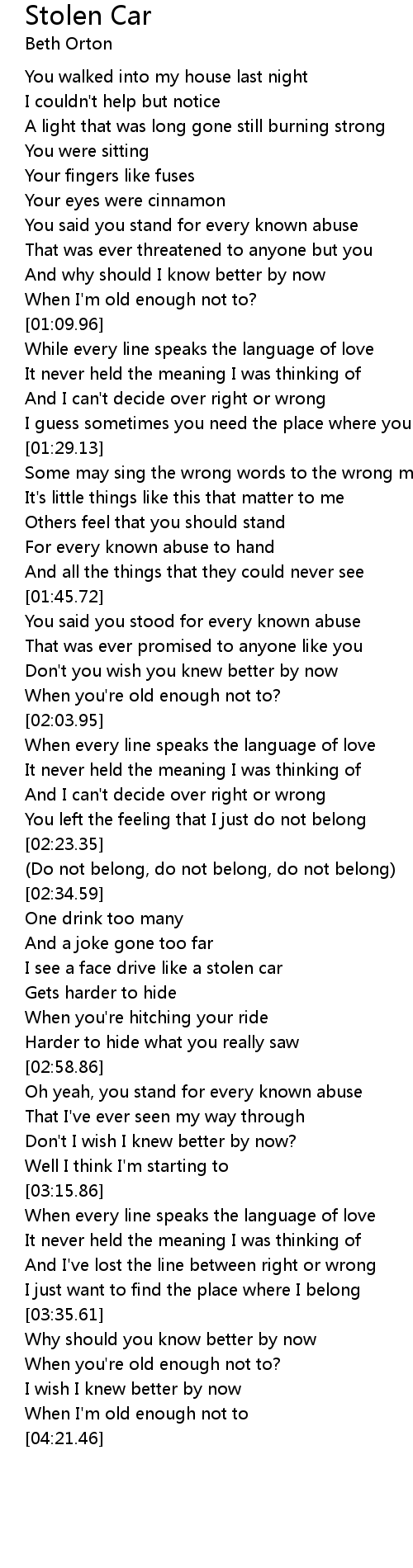 Stolen Car Lyrics