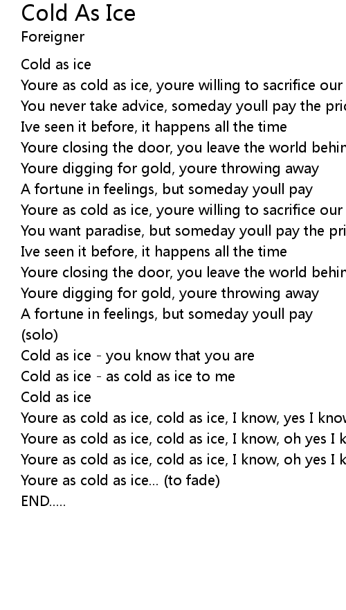 Cold as ice - as cold as ice to me |
