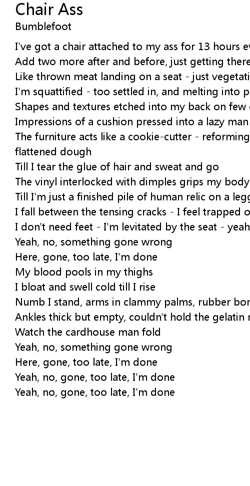 I don't need feet - I'm levitated by the seat - yeah, I've got chair ass |