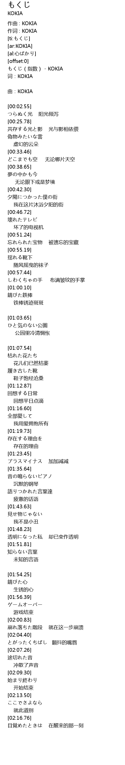 | [00:00.28] | もくじ(指数) - KOKIA |