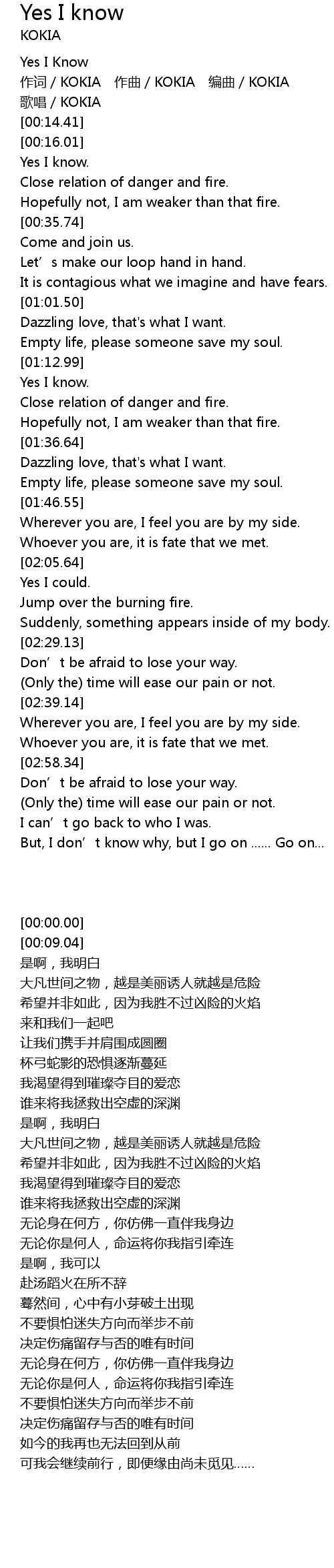 | [00:00.00] | Yes I Know |