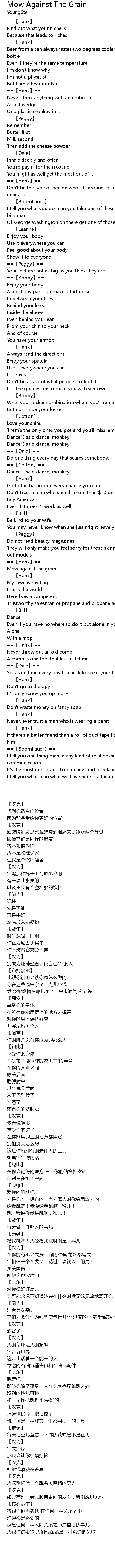 | [02:57.12] | Mow against the grain |