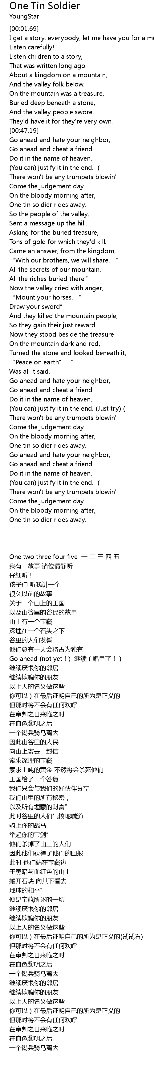 | [02:37.61] | One tin soldier rides away. |