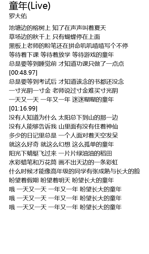 | [02:48.13] | 哦 一天又一天 一年又一年 盼望长大的童年 |
