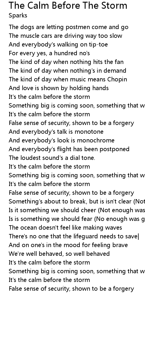 | It's the calm before the storm | |