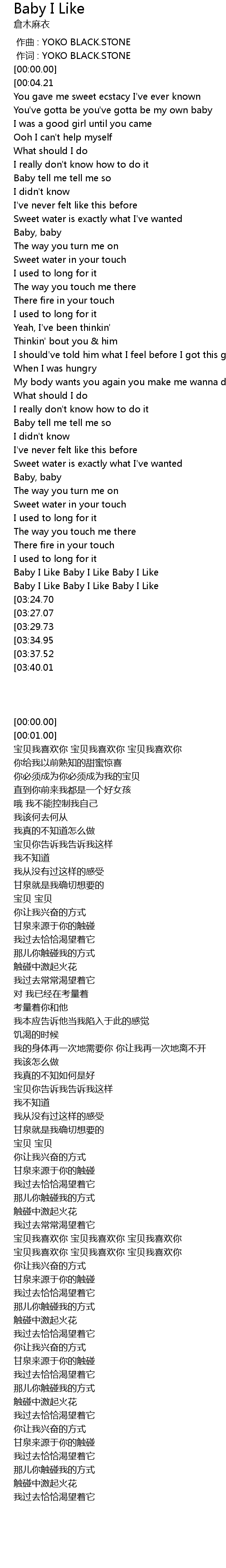 | [02:27.18] | Baby I Like Baby I Like Baby I Like |